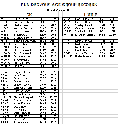 2025 -- Caden Durocher (17) 16:14 and Brook Jasperson (26) 18:43